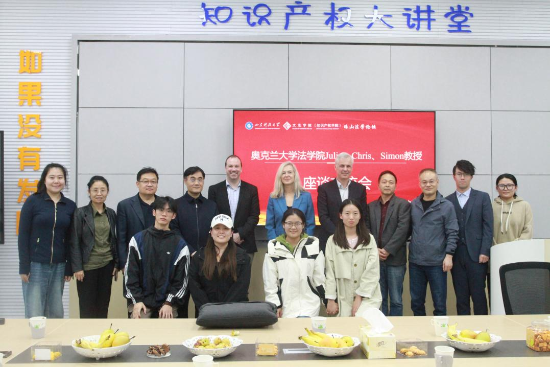 座谈会最后,全体参会者合影留念,氛围热烈。此次座谈会不仅搭建了山东科技大学文法学院与奥克兰大学法学院的法律学者之间的即时交流平台,更构建了长效合作框架,对推动我校法学教育国际化、提升我院法学专业师生的国际视野具有重要意义。