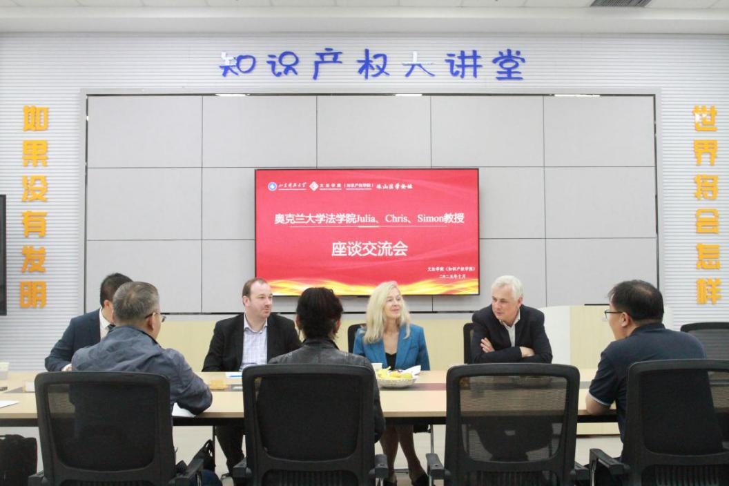2025年10月17日下午,我院主办的新西兰奥克兰大学法学院教授座谈交流会在图书馆2楼文法分馆举行。本次座谈会采用线上线下相结合的形式,由文法学院副院长秘明杰主持,奥克兰大学法学院Chris、Julia、Simon三位教授应邀参会,文法学院院长孙法柏教授、赵丽莉教授、李宗录教授、韩天竹副教授、吴立志副教授、张禹博士等法学系教师以及部分本科生、研究生代表共同参与,围绕法律前沿议题深度对话。