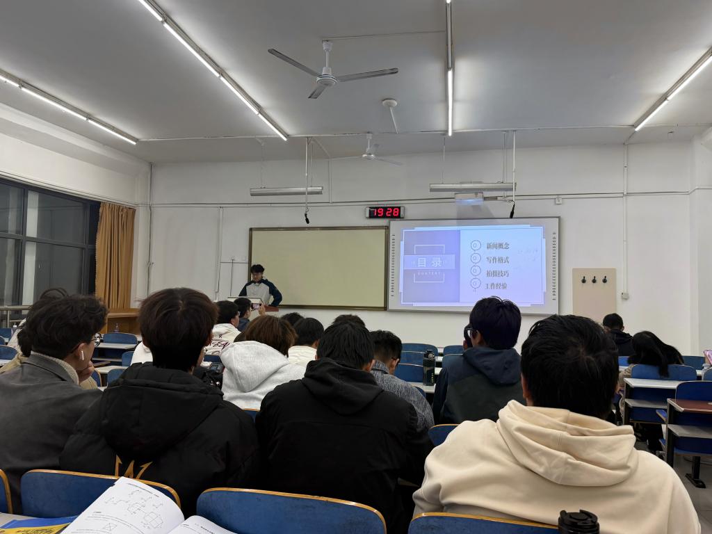 培训现场,颜诗涵以新闻写作的核心逻辑为切入点,从新闻概念、写作格式、拍摄技巧、工作经验等方面系统拆解了新闻写作的关键要素与核心原则,重点围绕新闻真实性、客观性、时效性、准确性四大核心特质展开深入解读。此外,她还向同学们分享了新闻选题、框架搭建、语言锤炼等实用技巧,以通俗易懂的讲解方式引导大家掌握优秀新闻稿的创作思路。