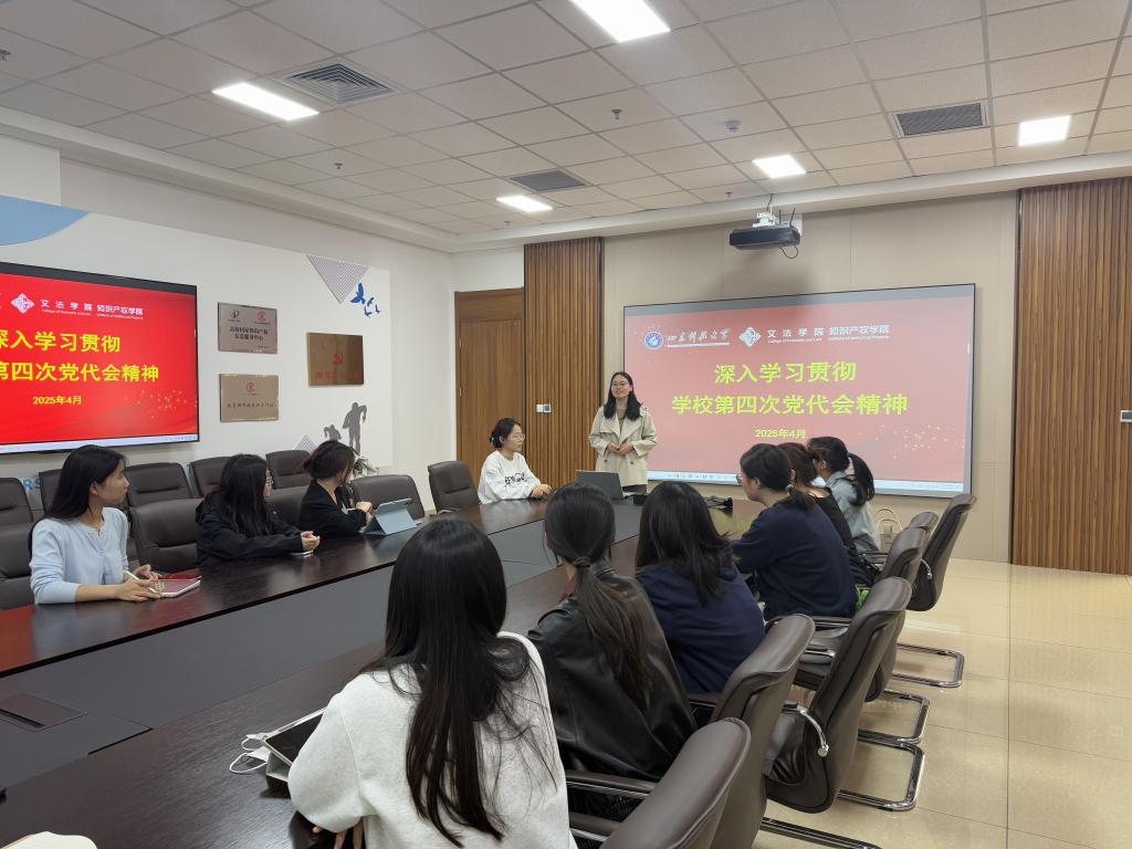4月29日,文法学院团委书记郭婷婷在图书馆207会议室为学生干部和学院青马班学员宣讲学校第四次党代会精神。