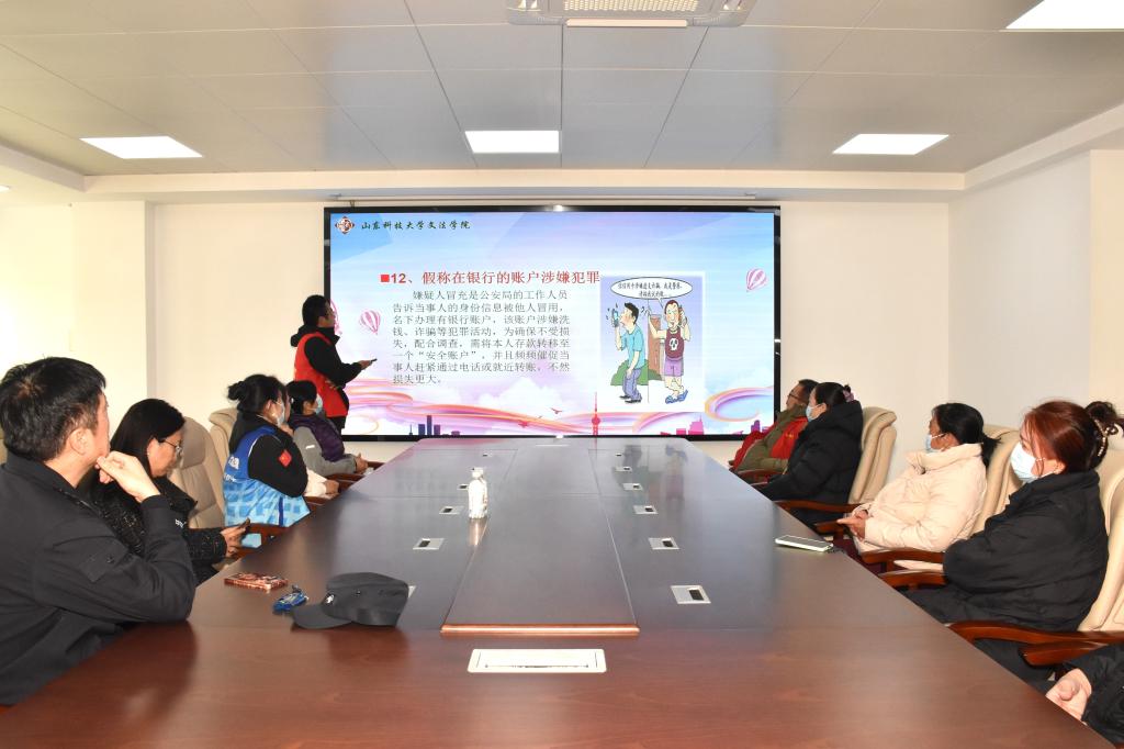 为进一步增强社区居民的反诈防骗能力,筑牢社区安全防线,近日,文法学院前往辛安街道金榜山路社区开展“反诈防骗,安全同行” 法治宣讲活动,辛安街道公安局共同参与宣讲并现场观摩指导。